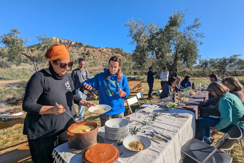 Valdealgorfa recibe la Semana Bio con visita al olivar empeltre y la almazara