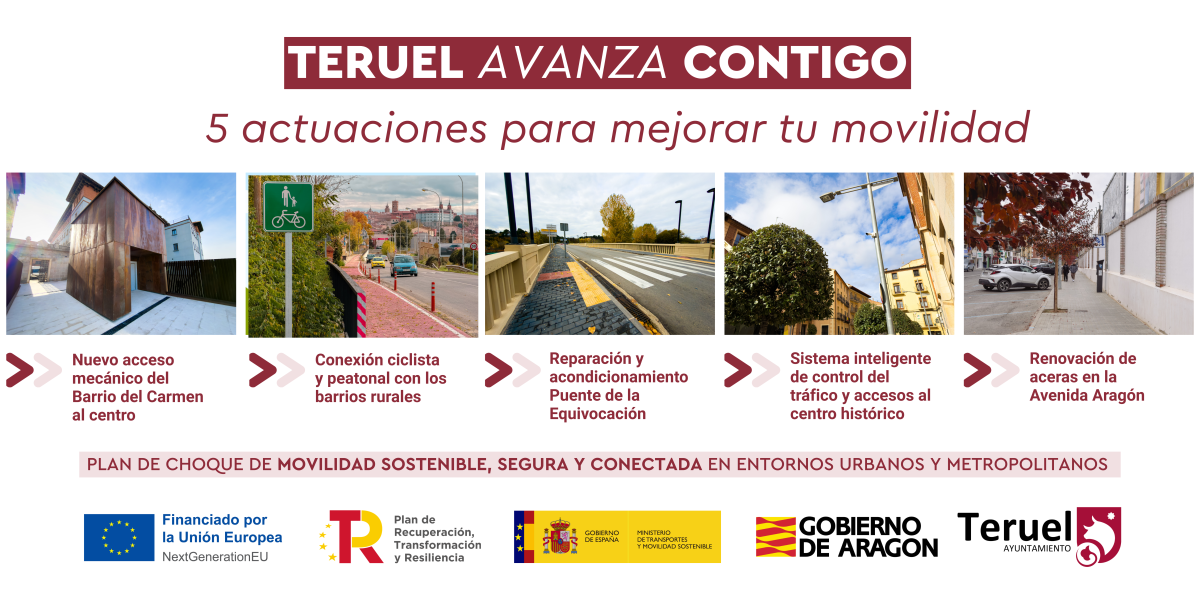 Teruel ha alcanzado un hito en su proceso de modernización urbana con la ejecución de cinco proyectos estratégicos orientados a mejorar la movilidad, reforzar la accesibilidad y avanzar hacia un modelo urbano más seguro, sostenible y tecnológicamente avanzado. Estas actuaciones, financiadas mayoritariamente por el Plan de Recuperación, Transformación y Resiliencia - Next Generation EU, representan una inversión global superior a 5,17 millones de euros, de los cuales más de 3,73 millones proceden de fondos europeos, junto a la aportación del Gobierno de Aragón.