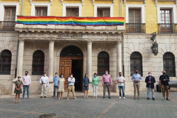 El balcón del Ayuntamiento de Teruel lució este lunes la bandera LGTBI con motivo de la celebración del día 28 de junio, Día del Orgullo. Los representantes municipales -a excecpión de Vox- y del colectivo LGTBI se concentraron en la puerta del ayuntamiento para reivindicar la igualdad de todas las personas independientemente de su condición...