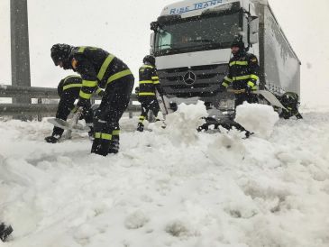 350 efectivos de la Unidad Militar de Emergencias ayudan a abrir carreteras en Teruel y Castellón