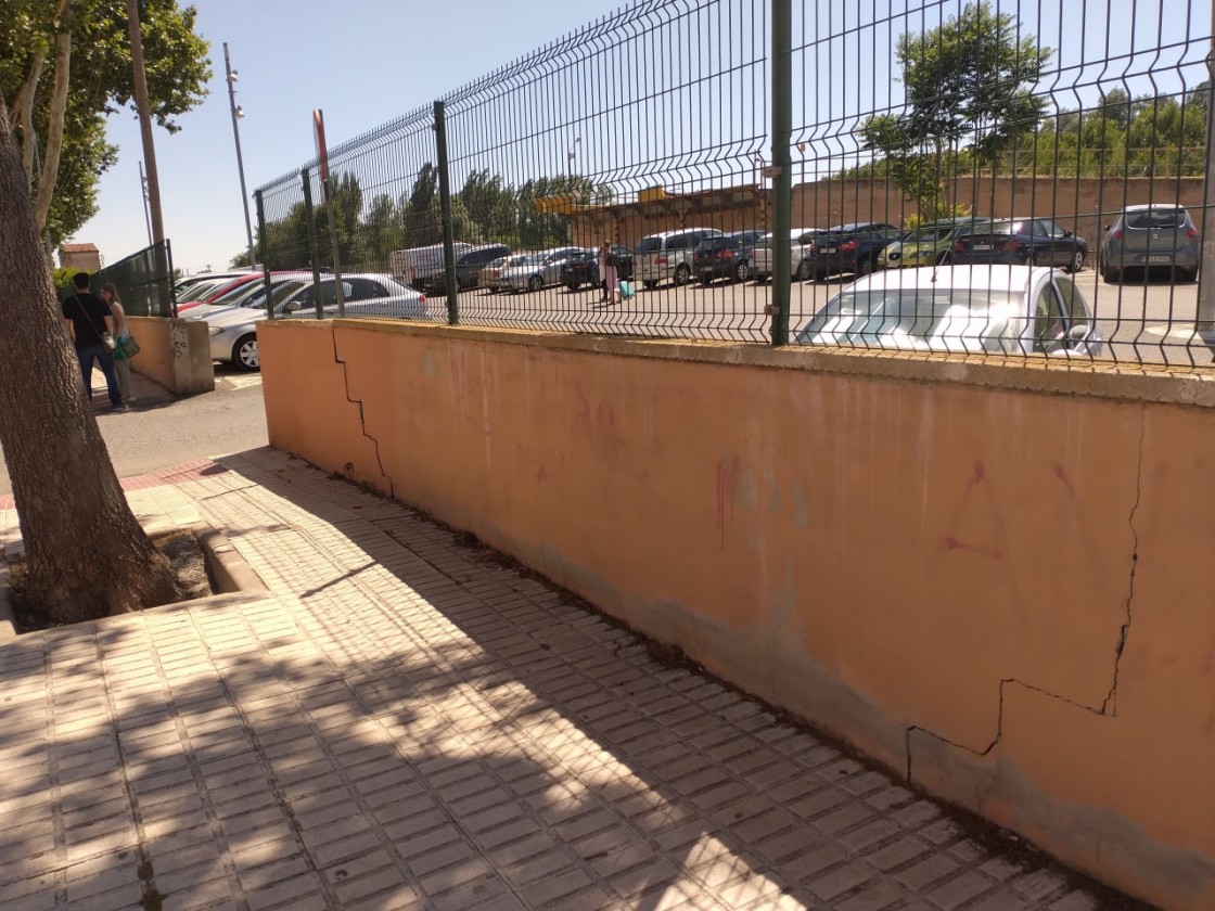 El estado general del muro que delimita el aparcamiento es muy deficiente con riesgo de caída, tanto los bloques de hormigón de los que está compuesto el muro como el vallado de la parte superior.