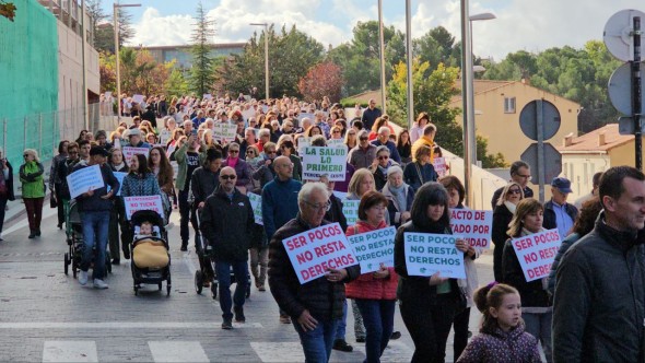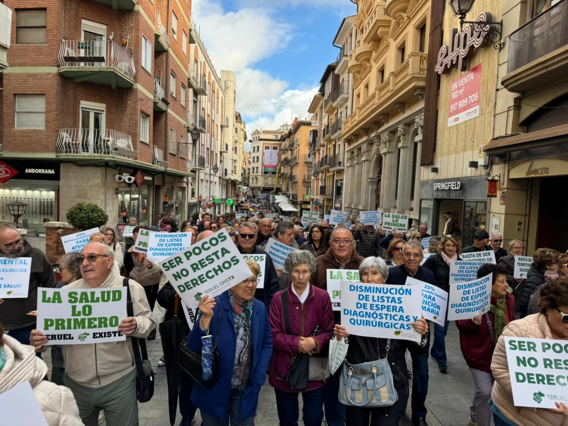 Menos de un kilómetro por las calles de Teruel en el que se reunieron cientos de personas con lemas y pancartas de todo tipo y demandando que la salud no entiende de ideologías, que ser pocos no resta derechos o la petición de que el 25% del presupuesto sanitario se destine a Atención Primaria, como principales lemas. “Esta manifestación no solo es conveniente, es necesaria. Se van conculcando nuestros derechos. No tenemos médicos ni pediatras, dermatólogos, rehabilitadores u otorrinos”, dijo Nieves Sánchez, ciudadana de Teruel, que se sumó a los entre 800 y mil participantes, según los organizadores de la manifestación.