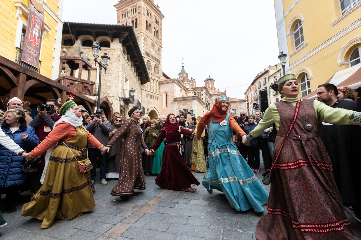 El pregón de Anabel Lapeña y Ana Segura profundizó en los orígenes de Teruel y animó a disfrutar de “esta inmersión histórica que nos permite acercarnos a aquellas gentes que poblaron estas tierras, trabajaron tantos oficios, bailaron en sus plazas, rezaron en los templos de las nueve parroquias que, por entonces, se repartían a lo largo y ancho de la villa”.
