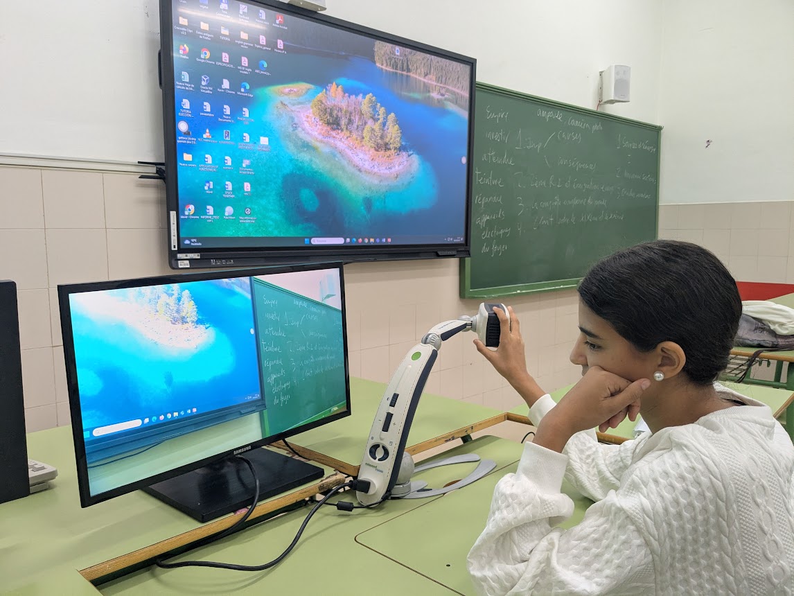 En el aula cuentan con lupas de aumento, pantallas o atriles, entre otras cosas, que se incorporan no sólo en el centro educativo, sino también en sus propios domicilios de forma que les facilitan el acceso al material didáctico, que es similar al de los compañeros.