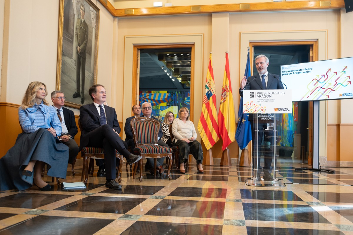 El proyecto presupuestario para el próximo año se presentó en el Pignatelli en medio de una gran expectación con la intervención primero del consejero de Hacienda, Roberto Bermúdez de Castro, que desglosó las grandes cifras de las cuentas, y después del presidente Jorge Azcón, que hizo una valoración política de lo que suponían.