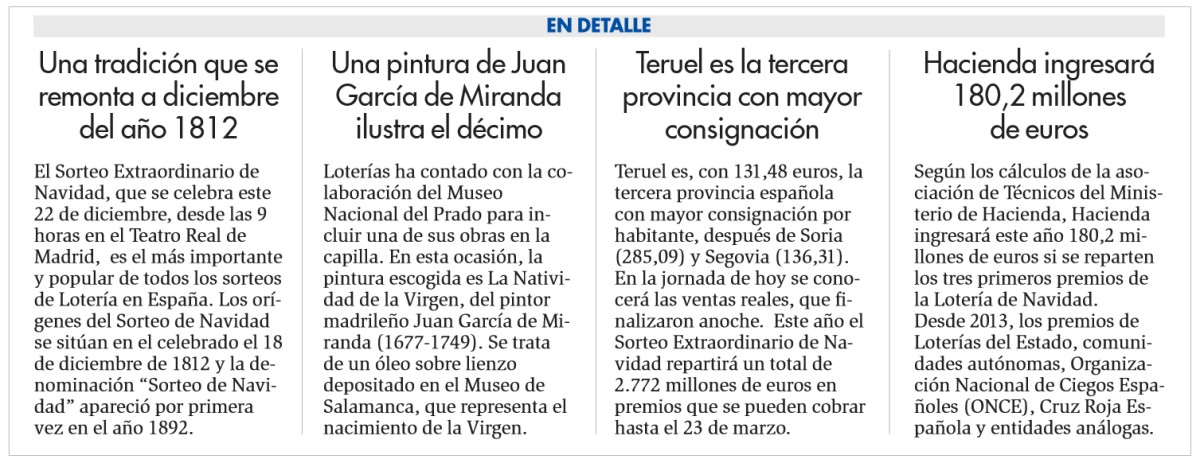 Cada turolense tiene consignados 131,48 euros para el sorteo de la Lotería de Navidad