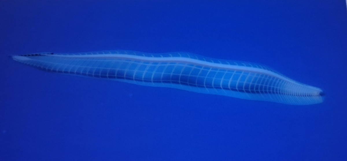 A través del correo electrónico, Mussini explica a este periódico que “a primera vista, Pikaia se parece un poco a un filete de anchoa nadando”. Así es como puede verse en Mar Jurásico. El científico indica que este organismo poseía “una serie de bloques musculares sin cabeza grande, aletas laterales ni cola distintiva”.