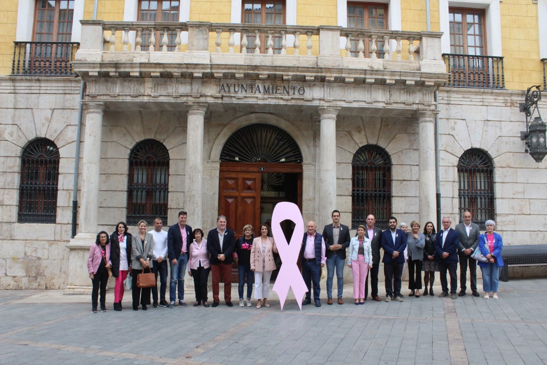Los actos del Día Mundial se desarrollaron también en Calamocha, con la colocación de un lazo rosa al peirón, y en Alcañiz, con la instalación de una mesa de sensibilización como las que se instalaron en otros municipios de la provincia.