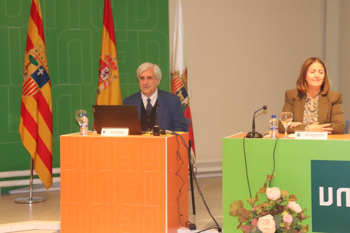 El profesor Badiola ofreció la conferencia inaugural con la pandemia de fondoEl Centro asociado de la Universidad de Educación a Distancia en Teruel realizó este jueves la inauguración oficial del curso, en la que también se entregaron los títulos y diplomas acreditativos, de los cursos 2022-2023 y 2023-2024, de las pruebas de acceso a la Uned para mayores de 45 años, los diplomas por los máster y los títulos de Grado de las distintas especialidades que imparte este centro, tanto de Teruel como de Alcañiz y Calamocha. En total 84 alumnos participantes de las distintas convocatorias. La conferencia inaugural corrió a cargo del catedrático Juan José Badiola, experto en pandemias y conocedor de situaciones en las que se producen virus o bacterias de fatales consecuencias, que bajo el título de Por qué ocurren la pandemias. Factores que favorecen su aparición y estrategias de su prevención, realizó un recorrido por la historia.