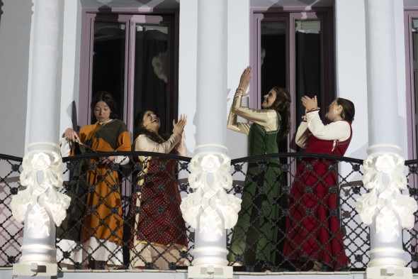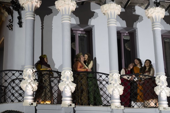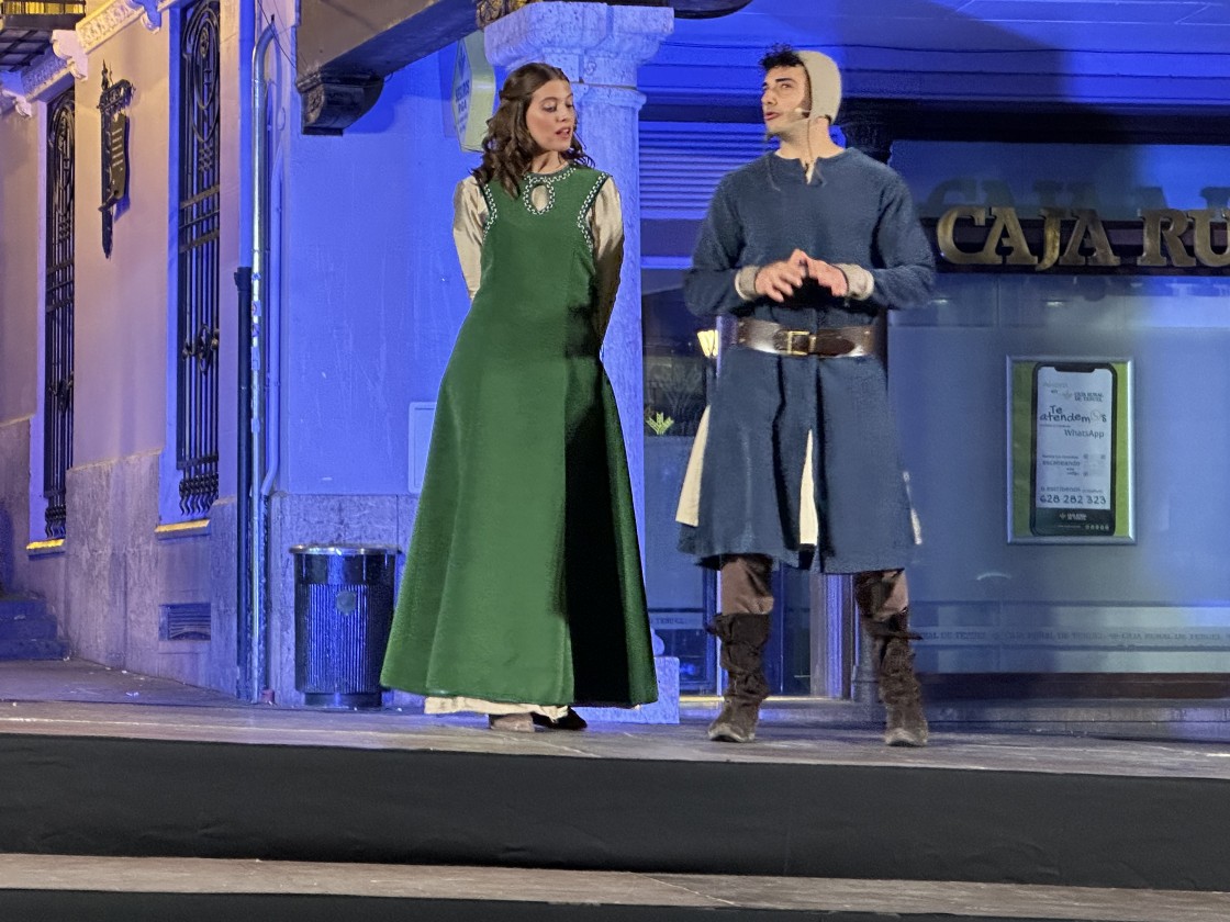 Nuevo planteamiento para la primera de las representaciones de La Partida de DiegoEl Encuentro entre los Amantes de Teruel convirtió este viernes por la noche la plaza del Torico en un escenario de leyenda. Fue la representación de la primera de las escenas teatrales de La Partida de Diego, con un nuevo planteamiento que dio salida al trabajo a la cantera de actores y actrices, todos no profesionales y voluntarios, que para esta edición se han querido sumar a la recreación histórica.