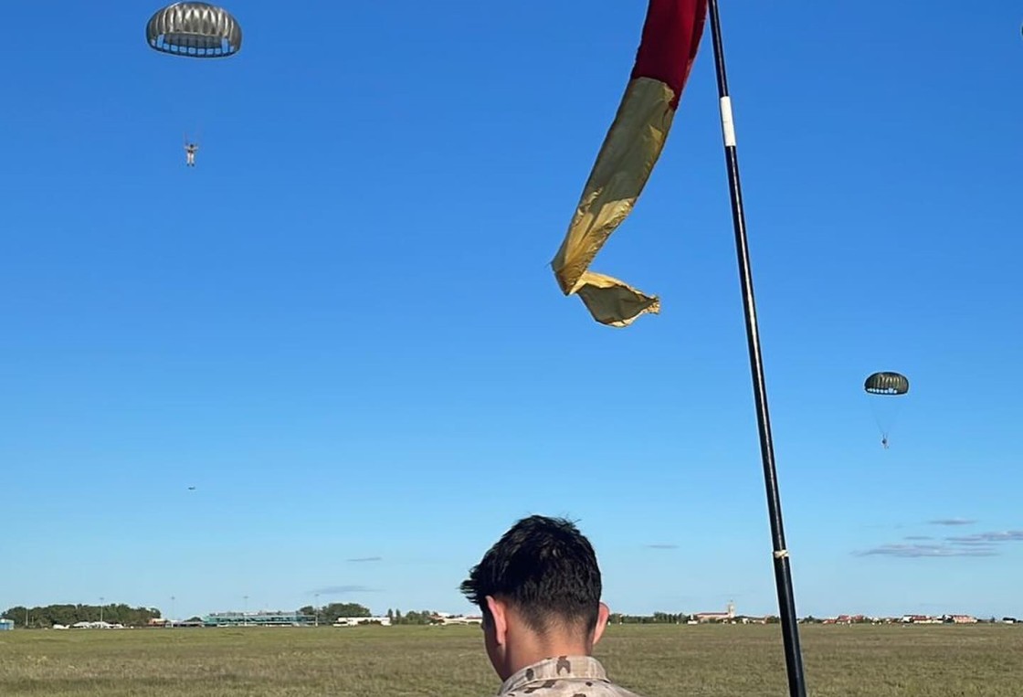 Teruel martes, 20 de agosto de 2024El Escuadrón de Apoyo al Despliegue Aéreo del Ejército del Aire realiza un salto paracaidista en Caudé