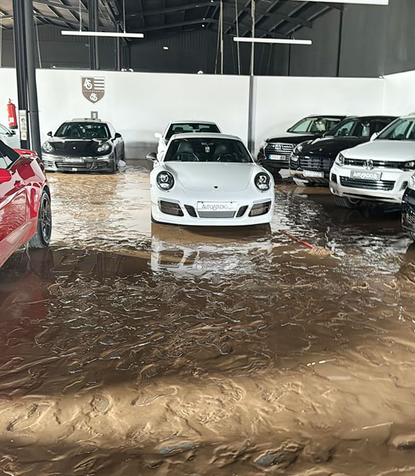 La empresa Autoestudio 55, del joven empresario de 34 años Adrián Zapater, está ubicada en Beniparrell. En la nave tenía unos 30 coches de alta gama y deportivos, listos para la venta, porque a este tipo de vehículos es a lo que dedicaba el concesionario. Porsche, Ferrari, Mercedes o BMW eran marcas habituales allí. También cuenta con taller donde había varios vehículos en reparación. El valor de los daños se ha calculado en más de un millón de euros, porque el agua llegó a subir unos 60 centímetros y entró en muchos coches. En ese momento, “no estaba en el concesionario, se marchó cuando recibió el aviso a las 8 de la tarde”, cuenta su padre.
