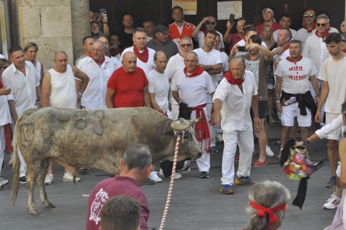 Por fortuna el quinto fue “excelente”, según los sogueros, y además quiso ser el que tocaba para hacer el homenaje público a Jorge León Canito, soguero muy comprometido con los festejos taurinos y otras manifestaciones culturales turolenses, que falleció por asta de toro en 2019 en los toros del barrio de El Carrel. Los sogueros hicieron un círculo con el animal en el centro, al pie del Torico, y la presencia de la camiseta de Canito y uno de los paños que él solía llevar en el cabo de la soga, lugar que solía ocupar. Una cerrada ovación de toda la plaza puso fin al breve pero emotivo recuerdo. Antes de eso, durante el traslado de los toros a la Nevera, también se había realizado un homenaje que todos los años se hace en memoria de los sogueros retirados que han fallecido ese año, y que en esta ocasión fue en memoria de Licer Navarro Julián y José Sánchez Gómez, Pepe El pintor.