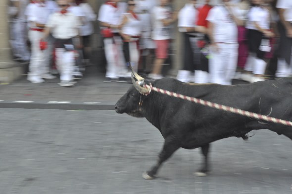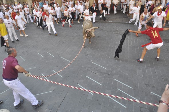 Como dicen los entendidos, lo más peligroso de los ensogados no está en la tarde sino en la madrugada del domingo al lunes, cuando son transportados de la plaza de Toros a los corrales de la Nevera. Según Rubén López Diéguez, uno de los sogueros, “durante los toros de la tarde hay ilusión, porque los nervios los has pasado por la mañana. En la plaza de toros el animal está en su terreno, sobre la arena, donde él corre mejor y nosotros peor, y además está entero y con toda su fuerza. Ese es el momento crítico y la tarde está para disfrutarla, y yo siempre digo que si el cuarto toro sale por la puerta grande de la plaza de Toros sin que haya pasado nada, ya es muy difícil que ocurra algo grave”.