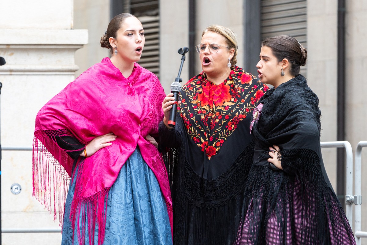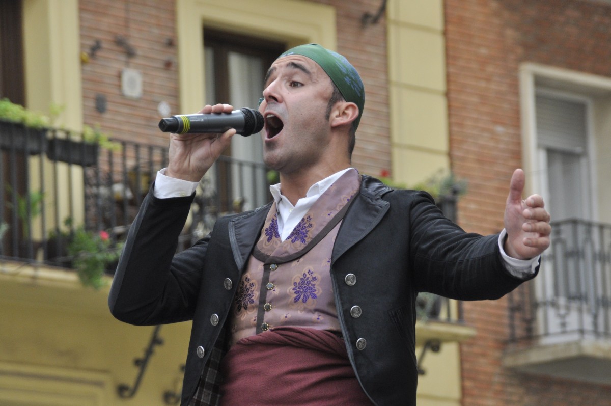 A la conclusión de la misa todos los asistentes, oferentes y joteros marcharon hacia el Centro Histórico. Aunque la ausencia de sol y también el puente festivo de tres días restaba personal por las calles, poco a poco se fue ambientado la plaza del Torico, con la llegada de vistosos mantones femeninos y cachirulos masculinos.