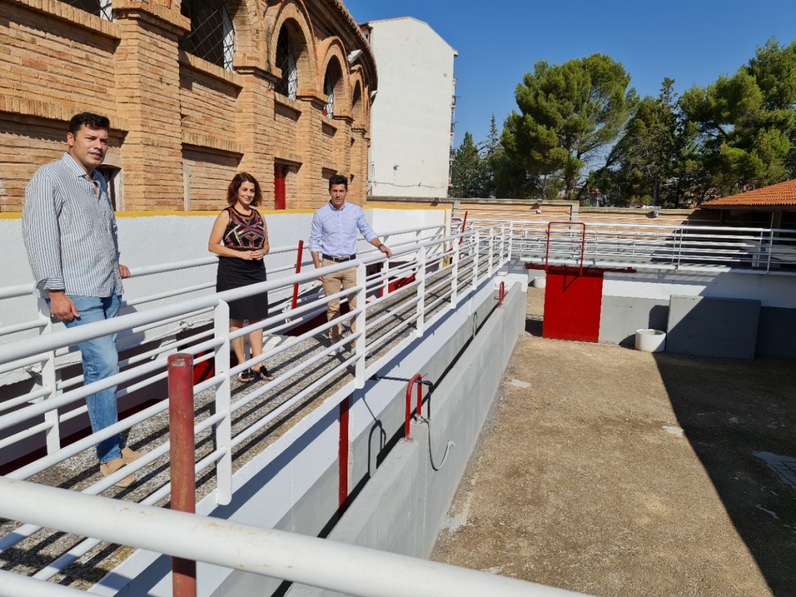 La alcaldesa de Teruel, Emma Buj, el concejal de la Plaza de Toros, Carlos Méndez, y el concejal de Fiestas y Turismo, Javier Domingo, han recorrido este jueves los espacios que se enseñan a los visitantes, lugares a los que habitualmente no se tiene acceso como la capilla, la enfermería, los corrales o los toriles.