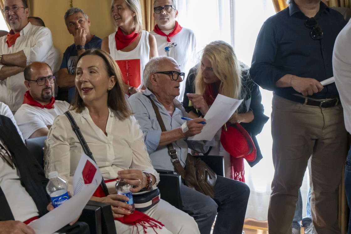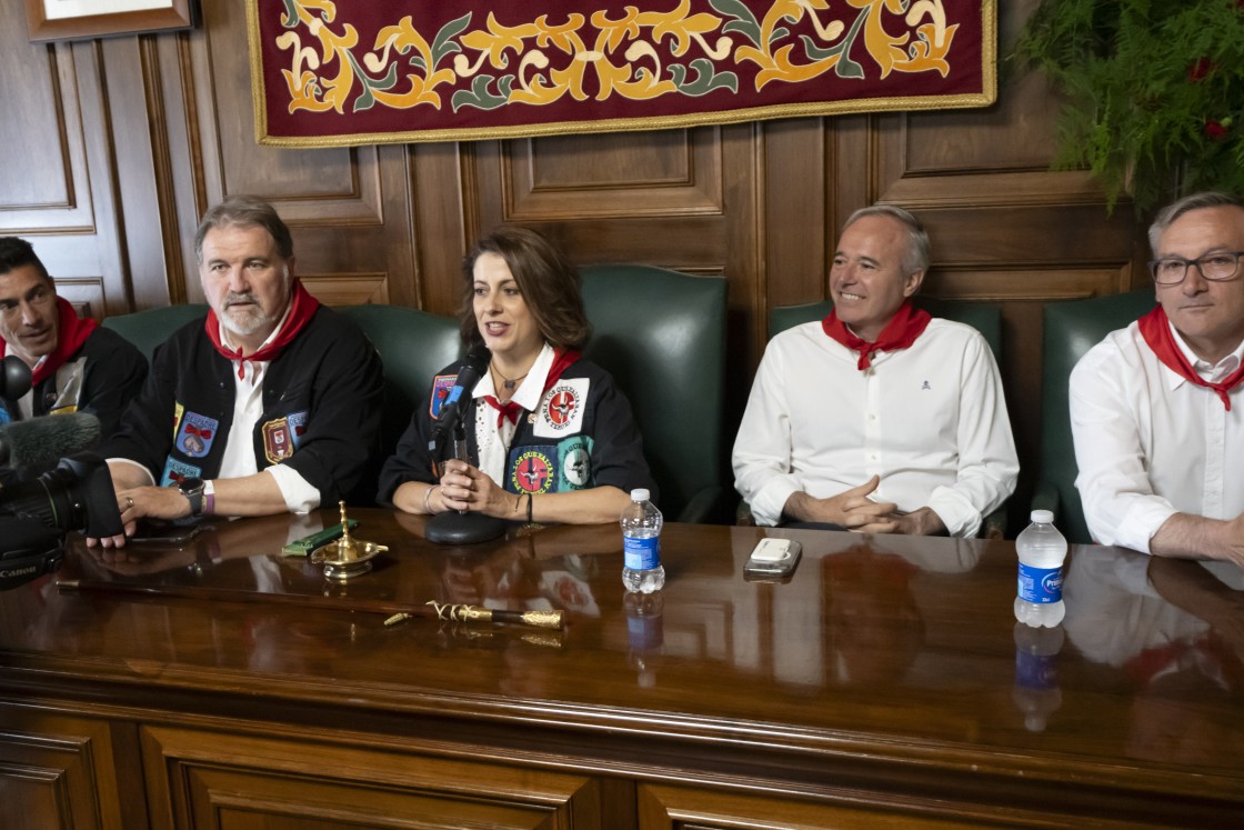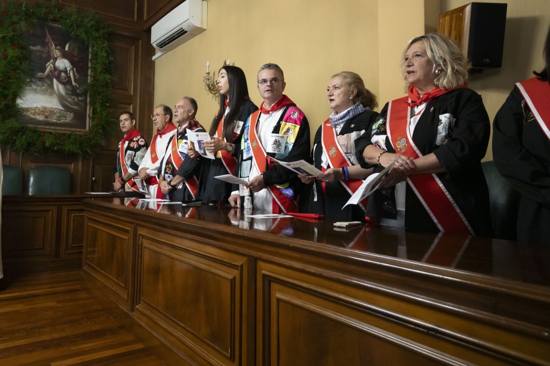 La alcaldesa de Teruel abrió los actos que se iban a suceder en el Salón de Plenos del Ayuntamiento “que se van a prolongar hasta el toque del Campanico”. Buj dio la bienvenida al presidente del Gobierno de Aragón y recordó “cómo Teruel acoge a todos los que nos visitan” y el “papel fundamental que tienen las peñas”.