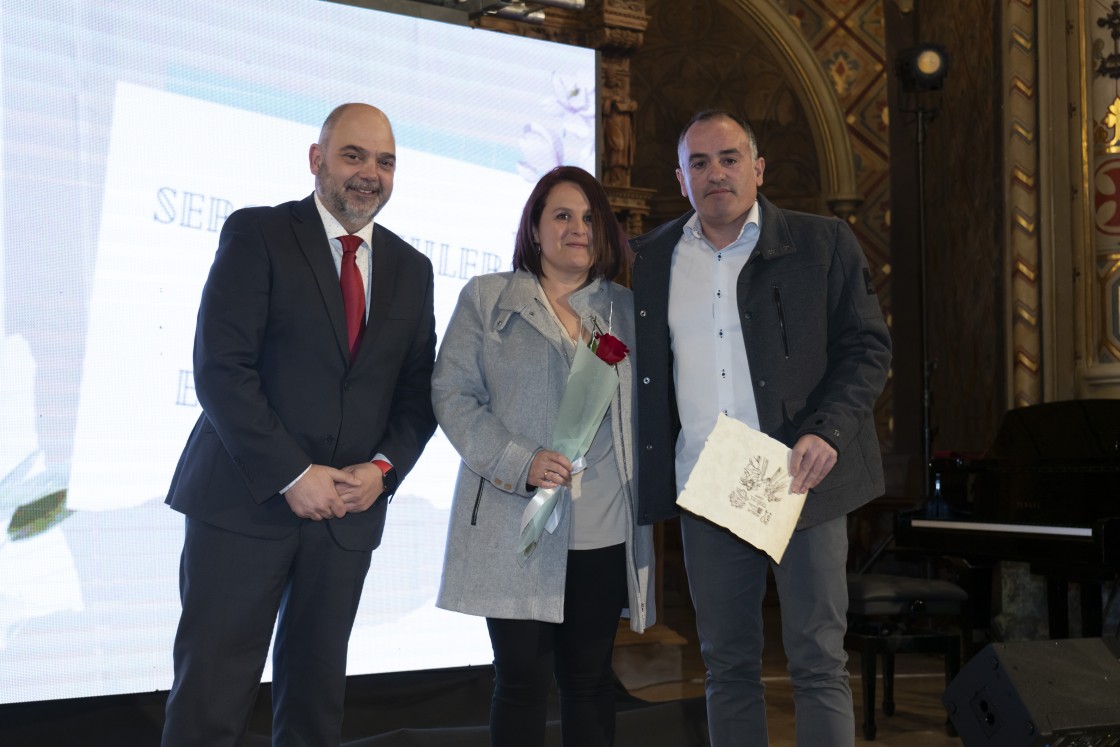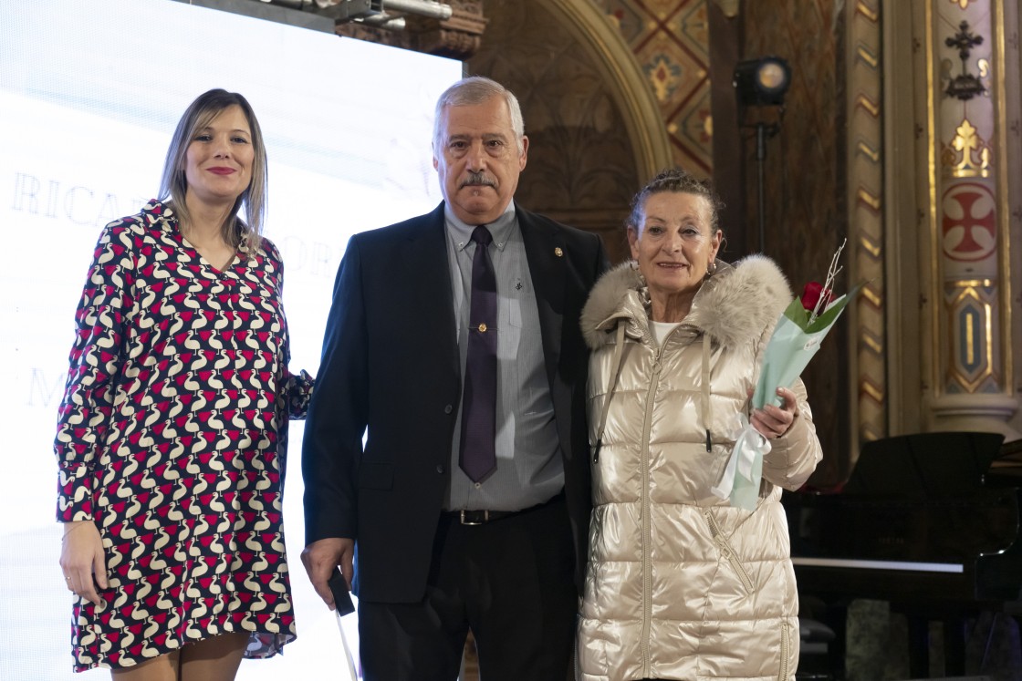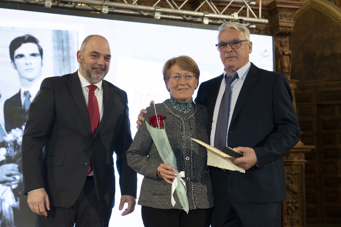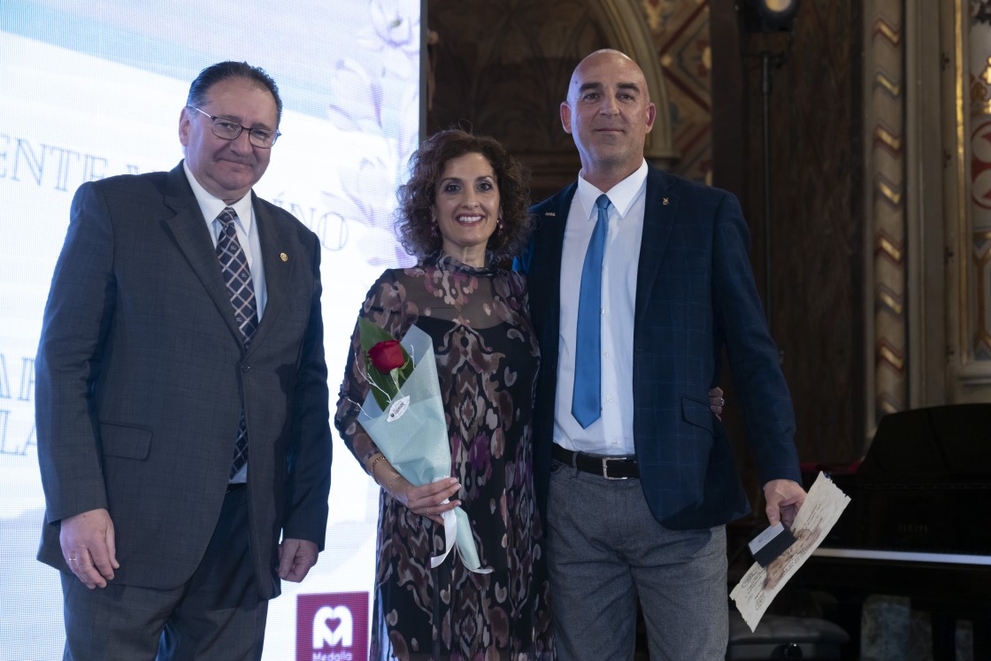 Pili Lázaro quiso honrar a Vicente Vizcaíno, un almeriense que llegó a Teruel en 1993 y con el que lleva casada 25 años, con una medalla de Los Amantes, símbolo de la ciudad en la que nacieron sus hijos, David y Rubén.