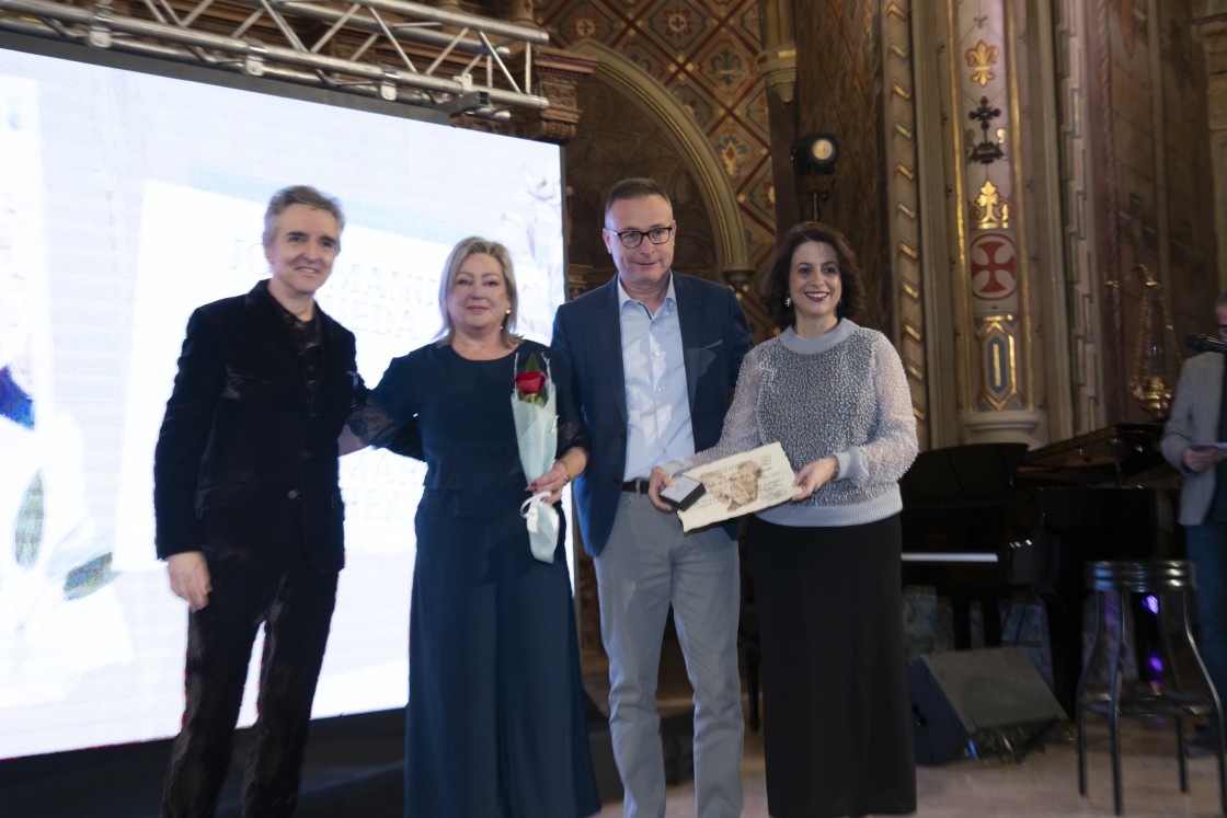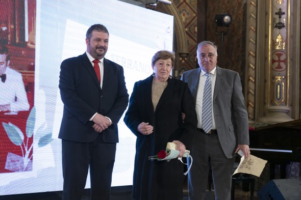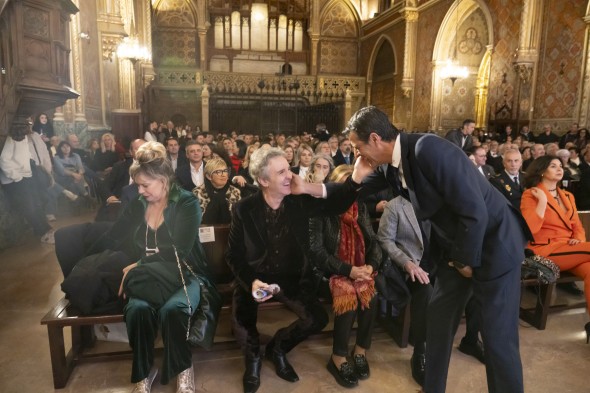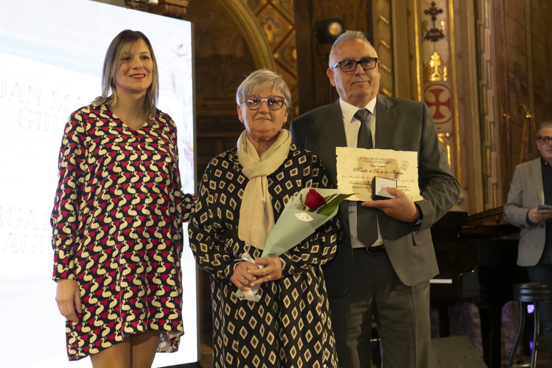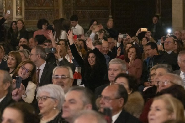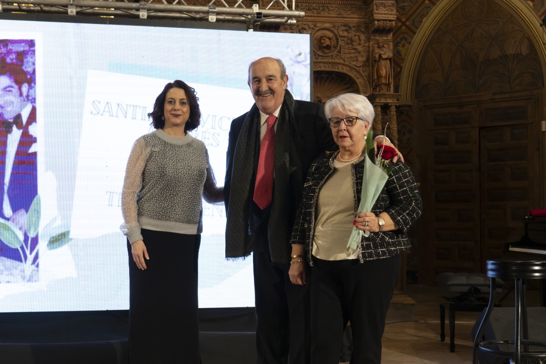 La música de la Extraordinari Band de Carolina Ferrer, Francho Gallego y Jesús Bellosta no fue la única que sonó este sábado en la iglesia de San Pedro. El vocalista de Fórmula Quinta, Paco Pastor, que acudió con Milagros Moreno a Teruel para recoger la medalla de oro por sus 50 años de matrimonio, cantó sobre el escenario dos de las canciones más reconocidas del grupo madrileño, que en 2017 también fue galardonado por el CITT: Tengo tu amor y Cuéntame. El cantante se llevó la ovación de todos los asistentes.
