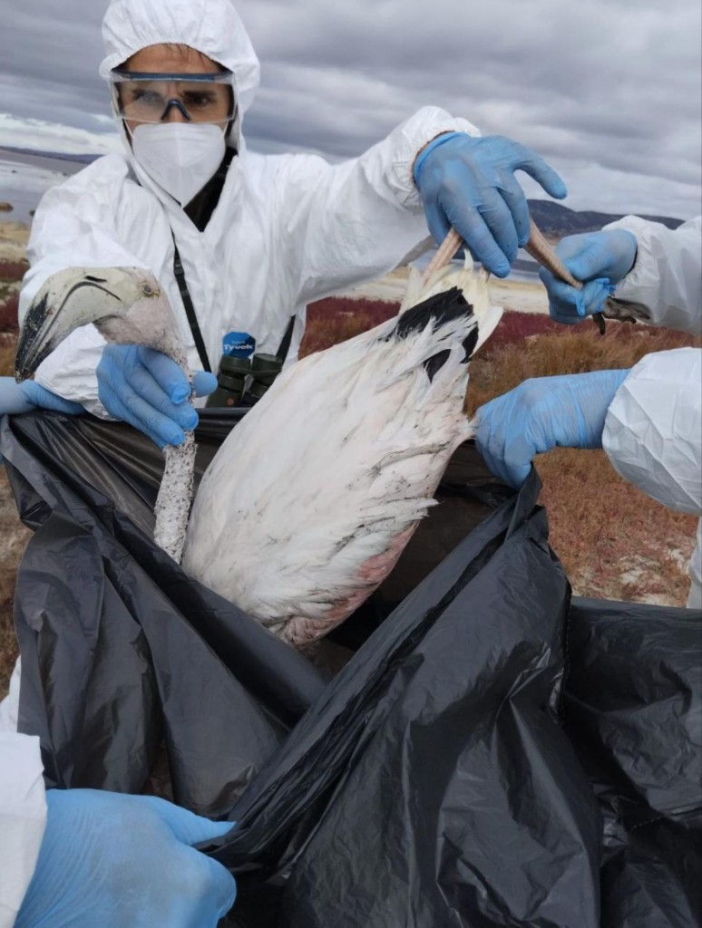 En total, hay medio centenar de personas dedicadas a la recogida de animales infectados, un proceso para el que se ha establecido un protocolo similar al que se pone en marcha cuando se produce un incendio forestal. Se han repartido un millar de EPIS, que cada persona debe renovar a diario, y botas de agua a todos los trabajadores, para garantizar la máxima seguridad en el proceso de retirada de cadáveres.