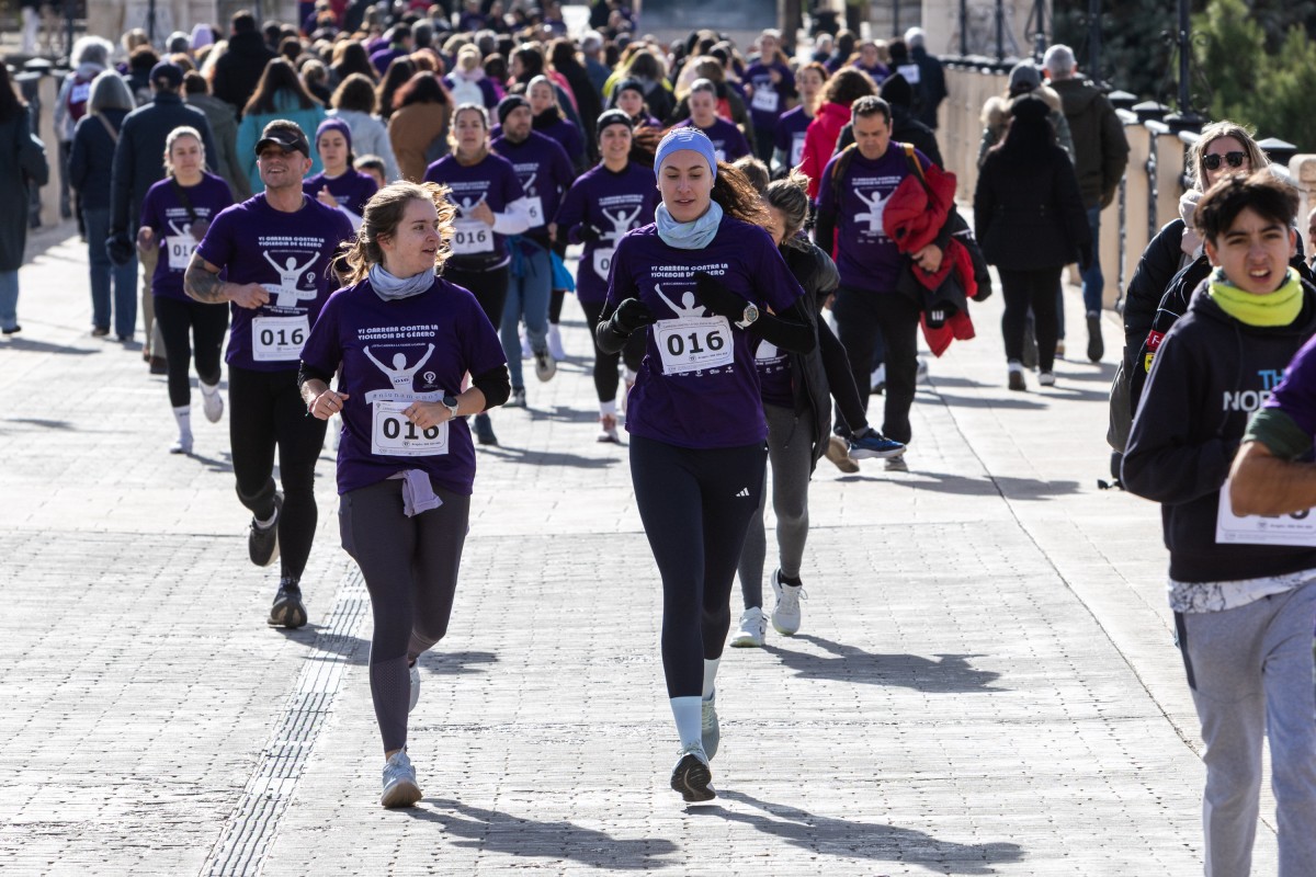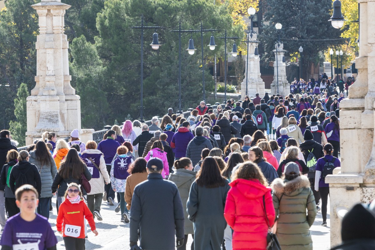 Cientos de personas se sumaron este domingo al grito de “¡Basta ya!” y tiñeron de morado las calles del centro histórico de la capital y su primer Ensanche durante la Carrera contra la Violencia de Género, organizada por la Coordinadora de Organizaciones Feministas de Teruel (COFT), y que volvió a disputarse después de que el año pasado tuviera que ser cancelada por las actividades desarrolladas con motivo de la dana del 29 de octubre. “La violencia machista es real, existe Y quienes niegan esta realidad, están contribuyendo a que el problema sea cada vez mayor y se convierten en cómplices de los agresores”, sentenció Aitana Esteban, la joven encargada de leer el manifiesto de la COFT.
