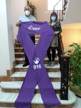 El presidente de la Diputación de Teruel, Manuel Rando, ha recibido de manos de la diputada de Igualdad Susana Traver el lazo que colgará de la fachada del Palacio Provincial en la capital turolense. Son morados y llevan impresos el logotipo de la Diputación y del teléfono 016. Rando ha hecho una llamada a la sociedad turolense para sumarse a la lucha contra la violencia de género y ha afirmado que “esta fecha está marcada en nuestros calendarios como un día muy especial. No debemos olvidar que tras las cifras hay vidas que se han truncado para siempre. Es un reto de nuestra sociedad para avanzar, para convertir la reivindicación por la igualdad en un proyecto activo que evite nuevas víctimas”.