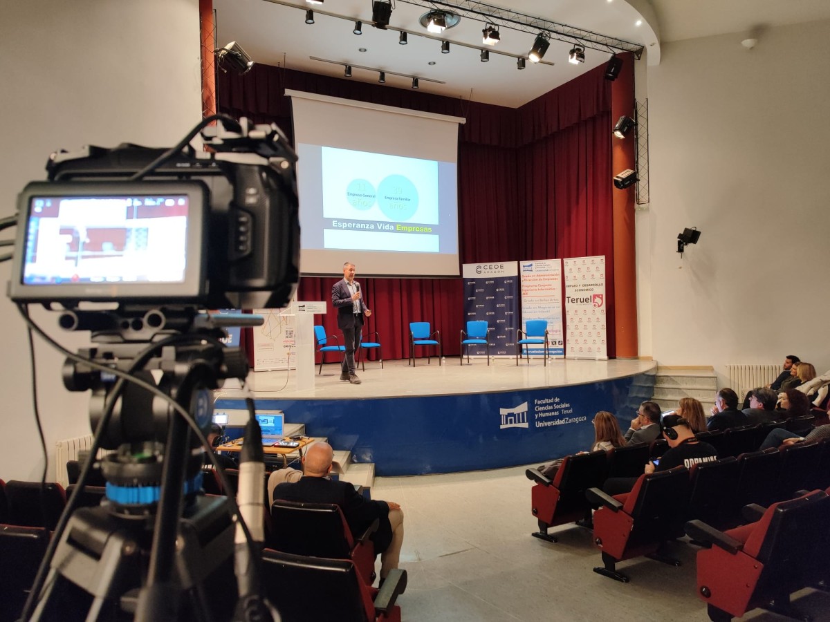 El salón de actos de la Facultad de Ciencias Sociales y Humanas (FCSH) del Campus de Teruel de la Universidad de Zaragoza acogió este miércoles la jornada sobre el relevo empresarial como oportunidad de emprendimiento conducida por el delegado en Teruel de CARTV, José Miguel Meléndez. Esta actividad se enmarca en el programa de actividades de la Semana del Emprendimiento en Aragón, que organiza la Fundación Aragón Emprende y que contempla la celebración de 23 eventos en 14 localidades con la colaboración de 65 entidades.