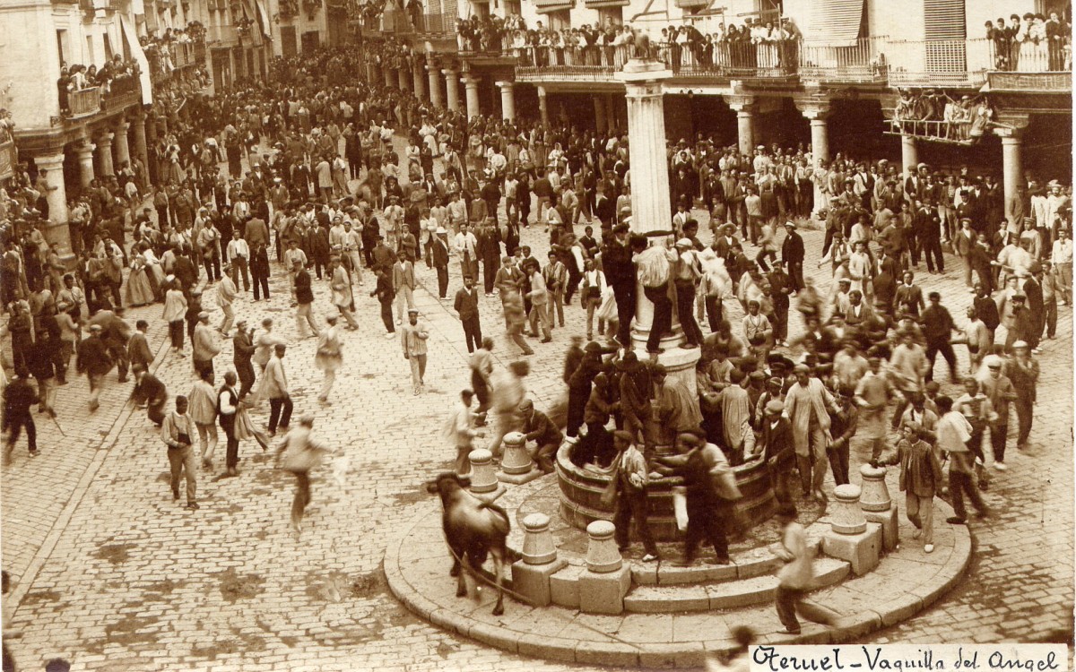 Texto: “El mismo año se erige en Teruel el Monumento más popular de la ciudad: su símbolo, pronto denominado Cariñosamente el Torico.