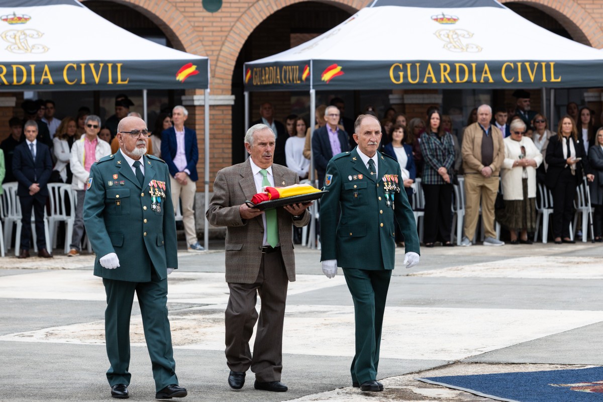 En el inicio de acto, la mañana se presentaba desapacible y con amenaza de lluvia, pero que no impidió para que la celebración volviera de suscitar emociones y reconocimientos. Para comenzar, tres agentes jubilados de la Guardia Civil portaron la bandera de España hasta el mástil y ser izada posteriormente con el himno nacional.