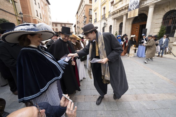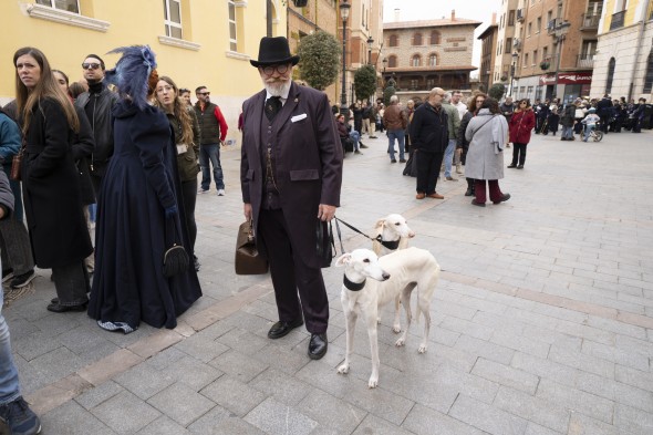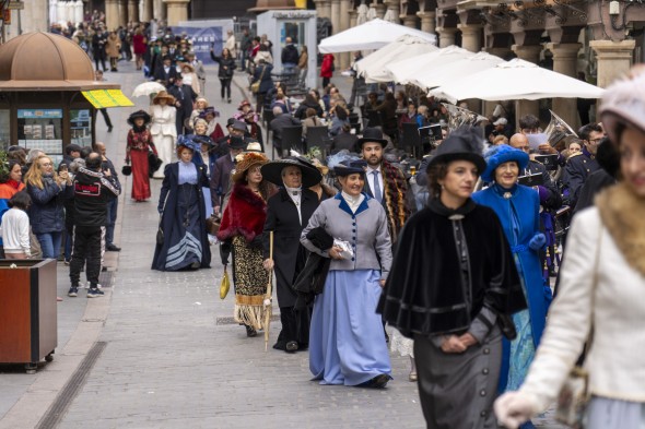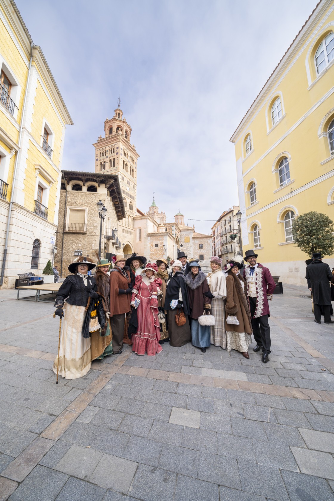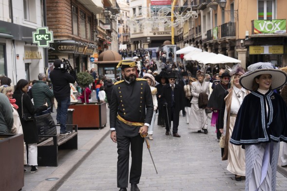También han venido hasta Teruel recreacionistas a título particular como Ana de la Cruz y su pareja, que llegaron de Reus (Tarragona), tierra de un rico legado modernista, cuna del arquitecto Pau Monguió. Lo hicieron representando una modista y un médico de la burguesía, pero además, Ana es la coordinadora de vestuario de la fiesta que se realiza en Reus. “En el modernismo las mujeres llevaban corsé”, contó.