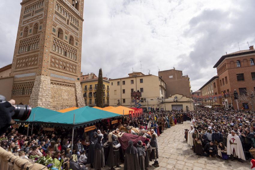 Además de la muerte del caballero turolense, la jornada del sábado ha contado con una treintena de actos que han girado en torno a la celebración de la boda de Isabel de Segura con Pedro de Azagra, como el Toro Nupcial, que se ha desarrollado pese a que la lluvia no ha dejado de caer.