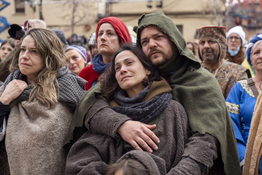 Teruel revive la muerte por amor de Diego de Marcilla ante los ojos de miles de personasCon la mirada puesta en el cielo, la ciudad de Teruel ha revivido este sábado la muerte por amor de Diego de Marcilla en una abarrotada plaza del Torico, que ha sido testigo de cómo el caballero turolense no ha sido correspondido por un beso de su amada, Isabel de Segura, que apenas un día antes se había casado con Pedro de Azagra, embaucada por el hechizo que unas hechiceras le lanzaron.