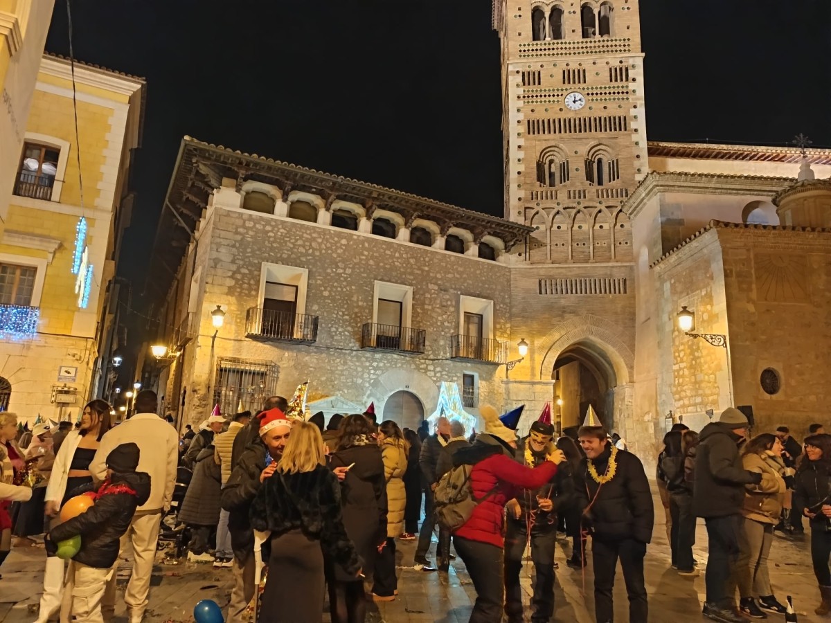 La catedral de la capital reunió en torno al reloj a numerosos adictos a las doce campanadasTeruel también fue protagonista en la Nochevieja de 2025, pues Santa Eulalia del Campo formó parte del recorrido televisivo con las campanadas de fin de año y la llegada de 2026. Alrededor de 500 personas se congregaron en la plaza de Santa Eulalia, ante el Ayuntamiento, ataviados para la ocasión y vestidos de gala. El Consistorio dispuso para todos los vecinos de cotillón, champan, uvas de la suerte y copas. La Televisión Autonómica llevó hasta los hogares aragoneses la llegada del nuevo año desde tres puntos de la geografía: Radiquero, Santa Eulalia del Campo y la plaza del Pilar en Zaragoza capital.