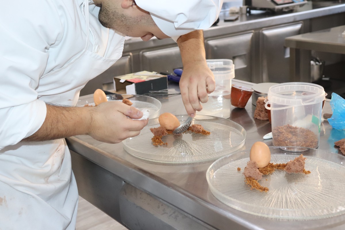 Al comienzo de la jornada de prácticas, el director de la Escuela de Hostelería y Turismo de Teruel se mostraba exultante por el trabajo que han estado haciendo durante toda la semana y por el que realizaron durante toda la mañana, con preparación de platos, nervios y expectativas. “Esta semana ha sido muy divertida y muy interesante. Hoy jueves (por este jueves), es el último día, con los concursos que tenemos, que hemos podido ver a los compañeros de coctelería y a los alumnos de cocina. También tenemos a los alumnos de guías, que hacen un concurso de edición de vídeo para Instagram”, comentó Pablo Casado, director y profesor de la Escuela.