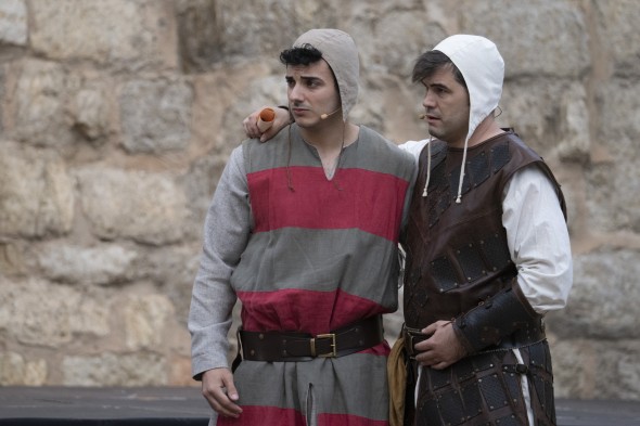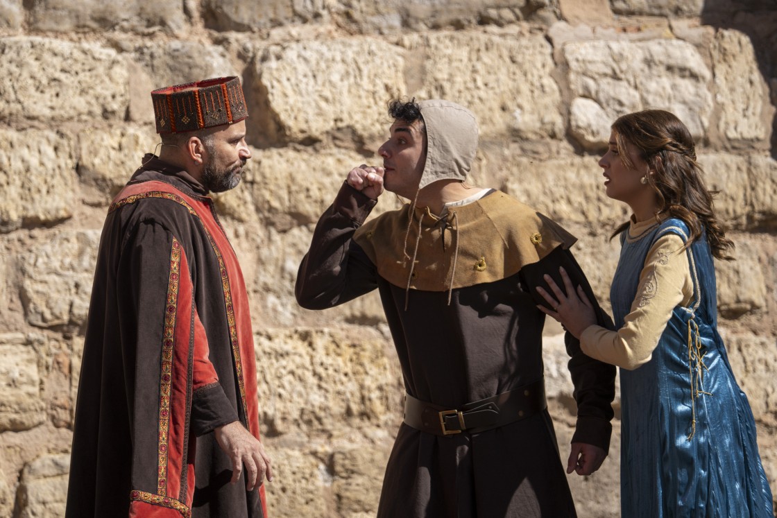 Mientras Diego e Isabel, un año más, se prometían amor eterno y él decidía ir a la guerra, hacer fortuna y regresar cinco años después para casarse frente a la oposición de los padres de ella, dos jóvenes zaragozanos, Alberto Sanz y Arantxa Roc, se casaban en otra escena -también con la oposición inicial del padre-. Lo hicieron en la ficción, siguiendo el rito mozárabe, pero como adelanto de la boda real que contraerán el 27 de septiembre del próximo año.