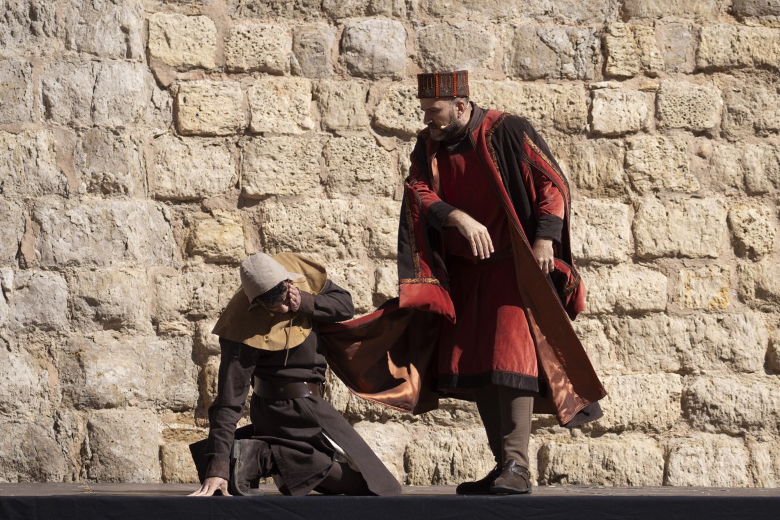 Durante la jornada de este sábado, y tras su debut en la tarde del viernes con la primera escena que interpretaron ante el público, los dos jóvenes que representan a Isabel y Diego, Andrea Gálvez y Sergio Caballero, se metieron en la piel de los personajes para recrear lo ocurrido cinco años antes de su trágica muerte por amor.