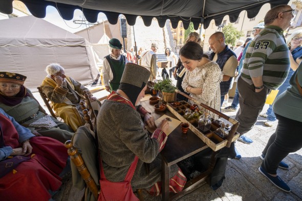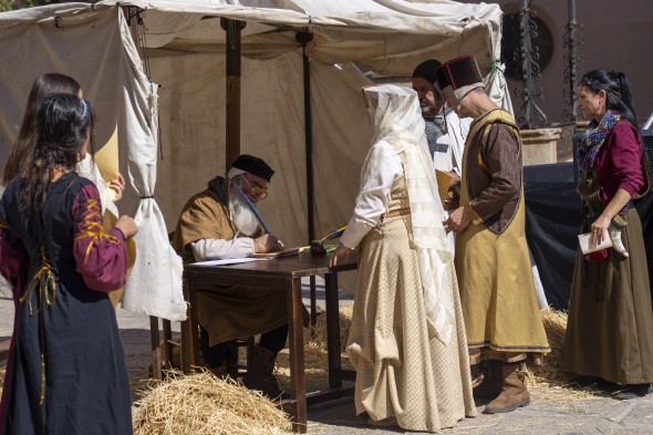 Esta boda medieval era una de las primeras escenas que se representó el sábado, en el campamento Ultramontano instalado en la plaza de las Monjas. Asistieron recreacionista almogávares tanto de Teruel como de Zaragoza, así como de otros lugares, y con un toque de humor encandiló al público que ya llenaba las calles del Centro Histórico para seguir las representaciones.