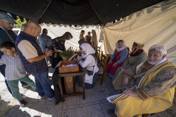 Paco Oliver, del grupo recreacionista de los almogávares de Teruel, destacó que escenas como la de esta boda en el campamento Ultramontano recreen el pasado pero también reflejen historias de amor del presente. Oliver comentó que todos los años intentan hacer alguna recreación nueva “para seguir haciendo grande la historia de nuestra tierra”, que en este caso fue una boda al estar muy relacionada con la historia de los Amantes “y el sentimiento del amor eterno, que es lo que da vida a Las Bodas de Isabel de Segura”.