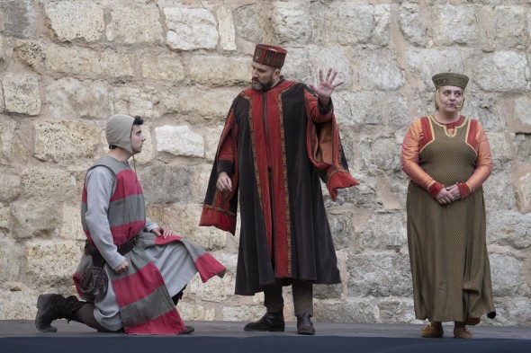 Por la mañana representaron la pedida de mano, en la que Diego se enfrenta a los padres de Isabel al pedirles su mano en una de las escenas más cargadas de violencia y tensión de ambas recreaciones, la de octubre y la de febrero. Y por la tarde se representaron el encuentro de las familias Marcilla y Segura, en la que se concede el plazo de cinco años para que Diego pueda hacer fortuna marchando a la guerra y a su regreso casarse con Isabel; y la que interpretan los dos enamorados en la plaza de la Catedral prometiéndose su amor, que como novedad este año mostró a un Diego más impulsivo que se cuela por el balcón para llegar a su amada. Tras la llegada de Pedro II, rey de Aragón, hoy domingo se recreará el nombramiento de caballeros, la escena clave de La espera protagonizada por los dos enamorados y la partida a la batalla.