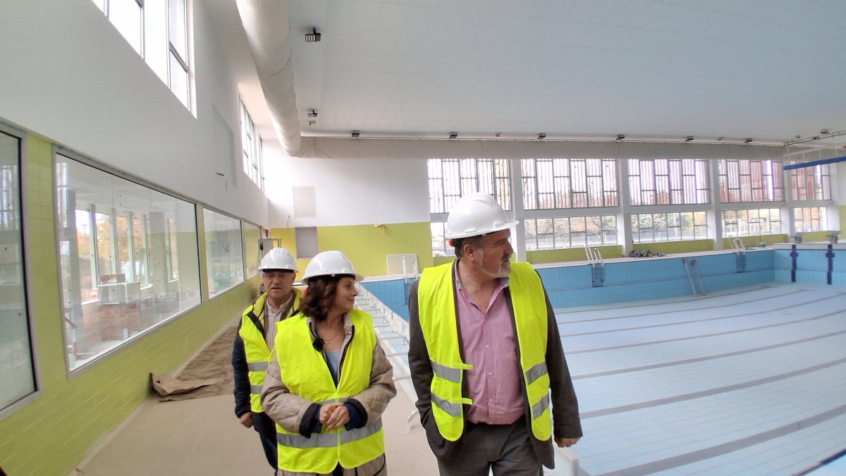 “Vamos a tener una piscina dotada con última tecnología para nuestros nadadores”, aseguró la alcaldesa, que pudo comprobar detalles ya instalados como las pantallas de toque en los extremos del vaso grande para tomar impulso o el suelo antideslizante que rodea los vasos de un material llamado rosa gres.