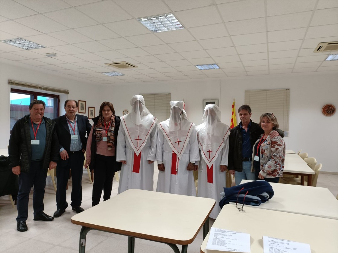 Para estas tres salidas contarán con 15 internos del Centro Penitenciario turolense. En la imagen, integrantes de la junta directiva y tres de ellos con sus hábitos.