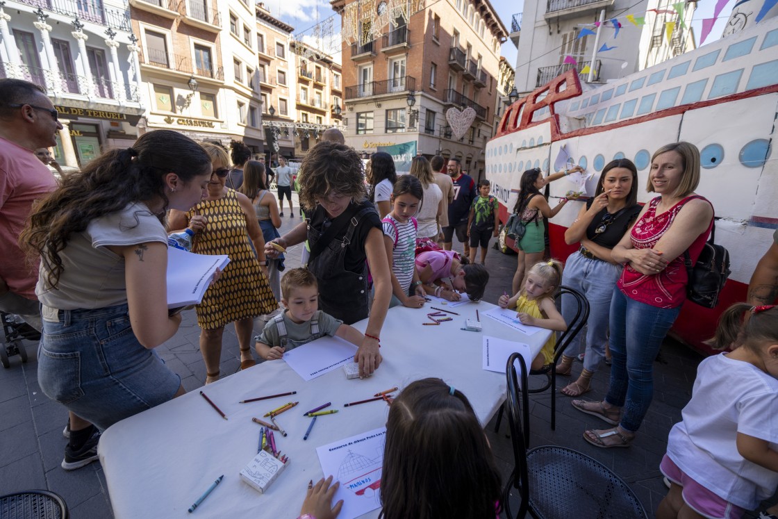 La peña encargada de poner el pañuelico entretuvo a los niños turolenses con un peculiar concurso de dibujos