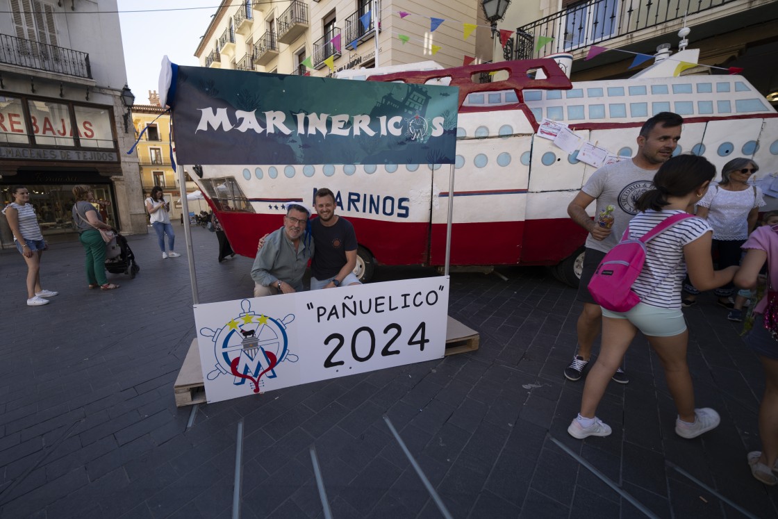 Este año es el turno de Los Marinos, que no se subían a lo más alto de la fuente del Torico desde el año 2001, cuando la peña cumplía 50 años y celebraron dicho aniversario con la puesta del pañuelico y con la fabricación de su característico barco que ha seguido navegando hasta la actualidad.