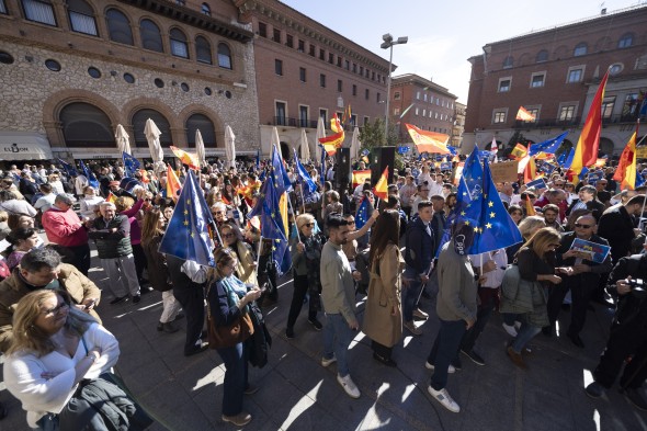 “Puigdemont a prisión”, “Es un delincuente nuestro presidente”, o “España no se vende” han sido algunas de las frases que se han escuchado en los distintos puntos de concentración en Aragón. En el manifiesto leído en las concentraciones unitario se dice que "España es un clamor por la igualdad, la dignidad, la justicia, la convivencia y la diversidad" y defiende que "en cada rincón de nuestro territorio decimos: No al privilegio. No a la impunidad. No a la amnistía".