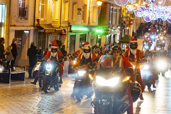 Una de las citas más destacadas fue el desfile motero solidario para recaudar fondos destinados a ayudar a los niños de La Palma, damnificados por el volcán. Una iniciativa en la que participaban los motoclubs Bajo Cero, Alimañas, Vespas y Moteros carajilleros y que logró una gran participación que llenó de papás noeles motorizados las principales calles de la ciudad.