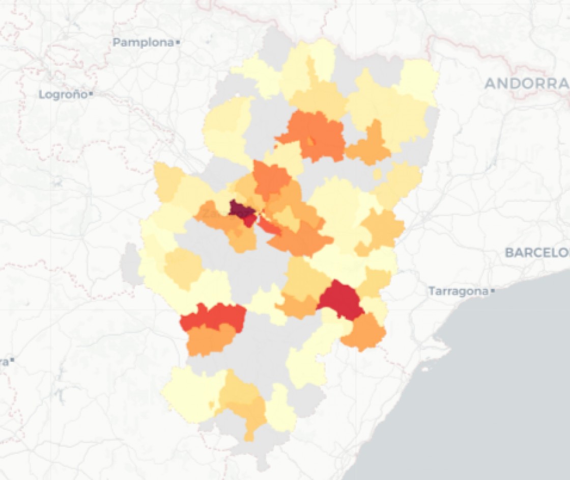 La tasa de incidencia por 100.000 habitantes a siete días alcanza en Aragón los 209,8 casos, mientras que por áreas de salud encabeza la de Alcañiz con 261,8, seguida por la de Teruel con 218, las tres de Zaragoza, que suman 212 de media, Huesca con 200 y Calatayud con 175,5.