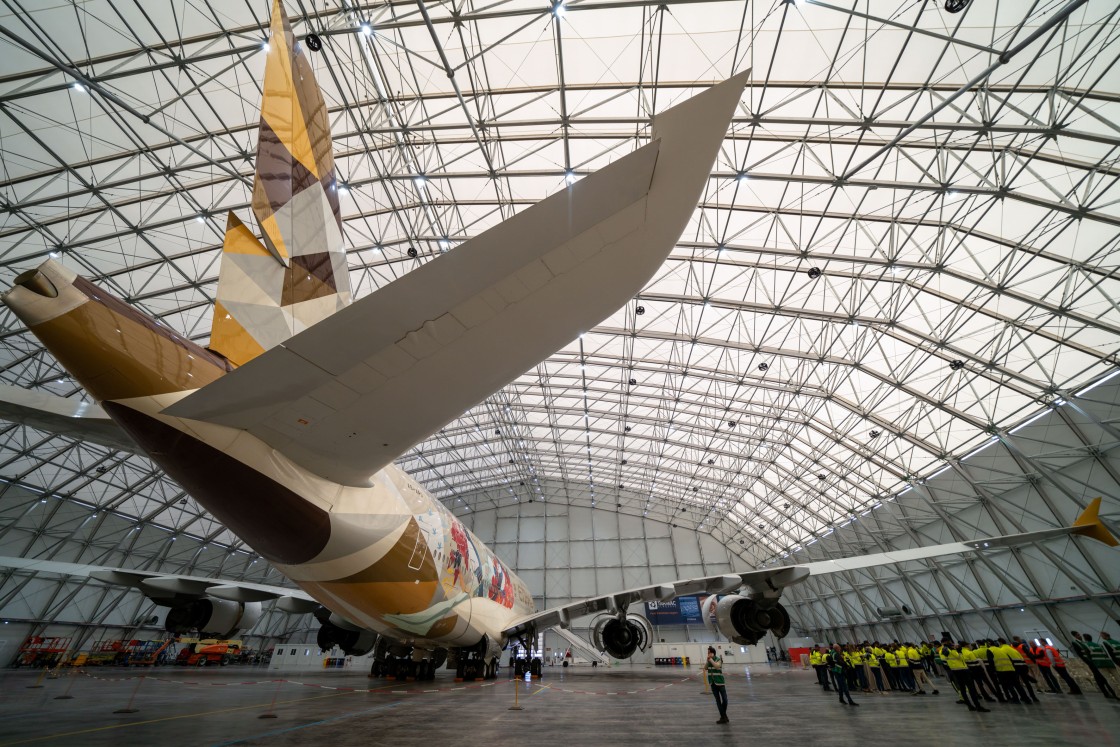 Diseñada para albergar el Airbus A380, el avión de pasajeros más grande del mundo, y hasta cuatro A320, ocupa 8.000 metros cuadrados, de los que 7.700 están dedicados exclusivamente al mantenimiento de aeronaves. El espacio adicional se reserva para oficinas e instalaciones para el personal, a medida que crece la plantilla.