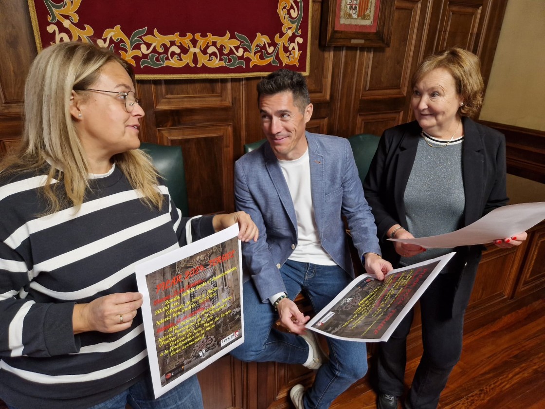 Carlos Méndez, con Concha Les y Susana Aguilar en la presentación de los actos por el Pilar