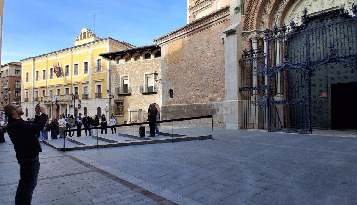 Así, varios alumnos explicaron este jueves a sus compañeros la reja y la fachada modernista de la Catedral de Teruel, la fachada de la casa de Doña Blanca, sede de la Comarca Comunidad de Teruel ,o los edificios de la plaza del Torico.