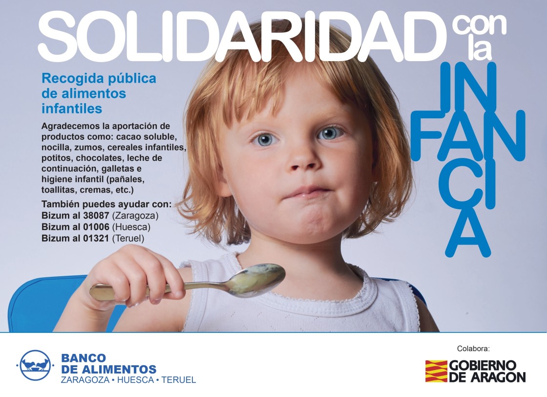 Con motivo de la celebración del Día mundial de la infancia que se celebra el 20 de noviembre, se solicita leche, zumos, cereales infantiles, cacao soluble, crema de cacao, potitos, leche de continuación, galletas y productos de higiene infantil, como pañales, toallitas o cremas, que se recogerán en distintos puntos de las tres capitales aragonesas.